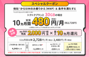 UQモバイルでは、他社からの乗り換えで高額キャッシュバックがもらえるスペシャルクーポンを実施中!